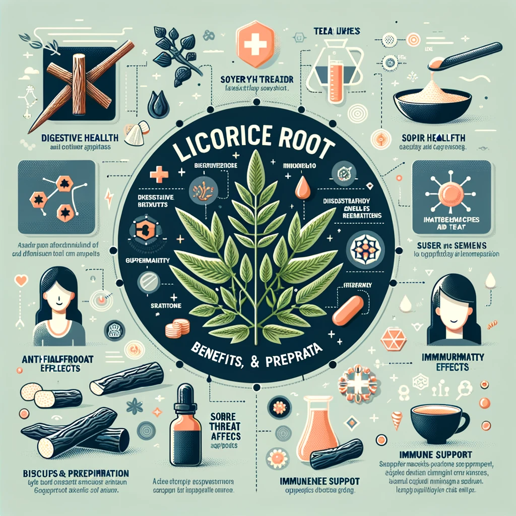 감초는 단순한 단맛 이상의 것들이 있습니다. 첫째로, 소화 건강에 도움을 줍니다. 감초는 위염, 위산 역류, 위궤양 등 다양한 소화계 질환에 효과적입니다. 둘째로 인후통 완화에 도움을 줍니다. 인후염과 기침에 대한 자연스러운 완화제로 많이 사용됩니다. 또, 항염 및 면역 강화 효과로 감초에 함유된 화합물이 염증을 줄이고 면역 체계를 강화할 수 있습니다. 마지막으로 면역 체계를 지원합니다. 감초는 바이러스와 박테리아에 대항하는 데 도움을 주어 면역 체계를 강화할 수 있습니다.