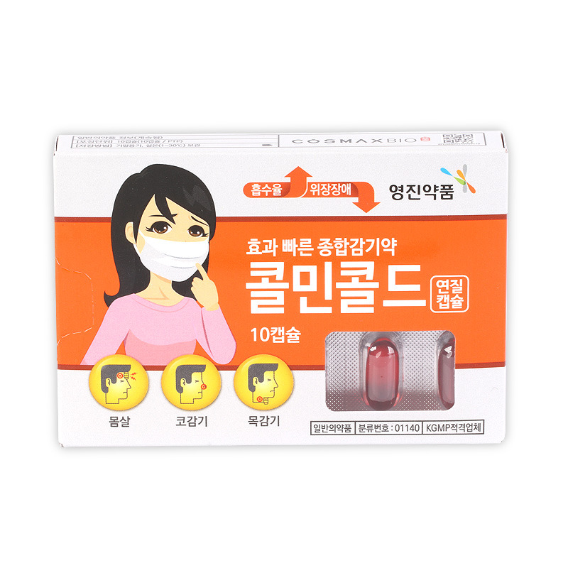 종합적인 감기 증상(열, 콧물, 기침, 두통 등) > 콜민콜드연질캡슐