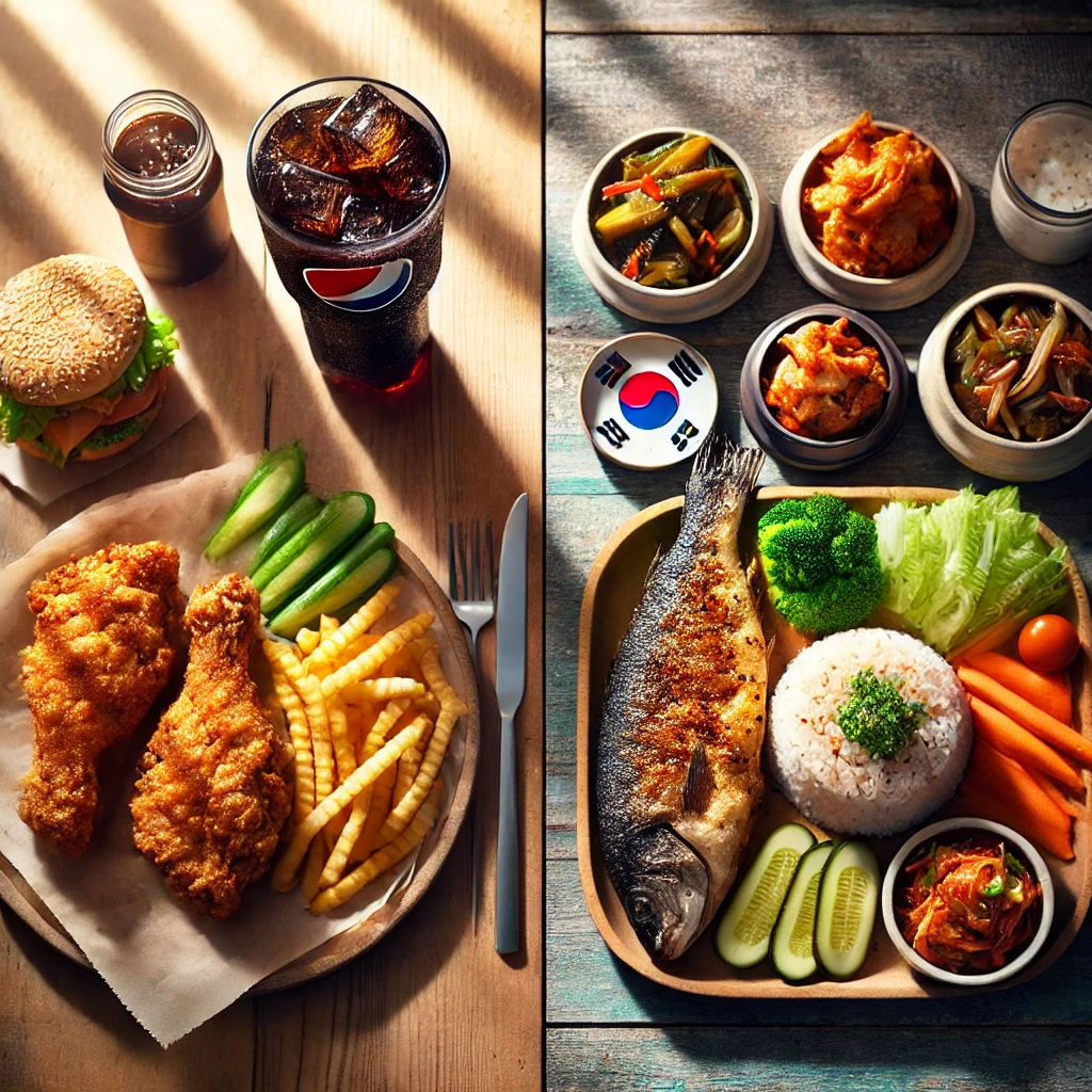 물론 엄격한 다이어트를 하시는 경우에는 우측같이 드시지 않겠습니다만 평소 식단이 왼쪽에 가까우신 분이라면 오른쪽처럼 바꾸기만 하셔도 약간의 체중 감소를 기대해 볼 수 있겠습니다.